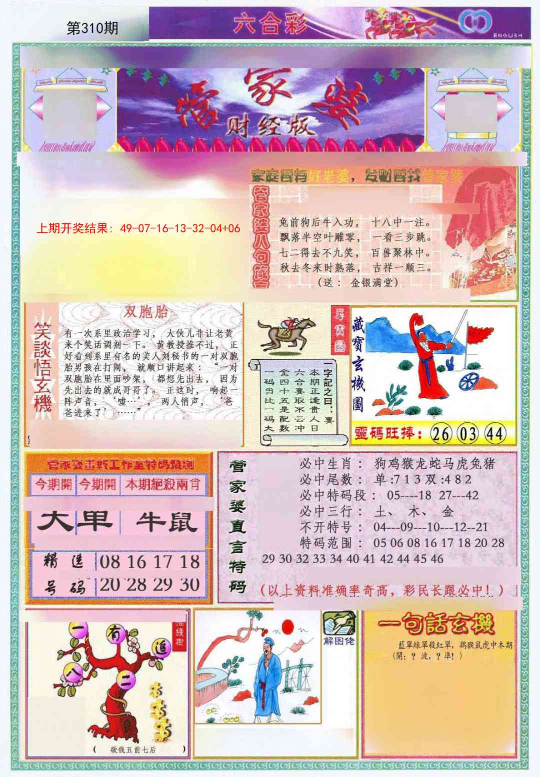 | 114期:十码 | 26.38.07.31.13 25.12.48.15.39 | 開:兔39准 |