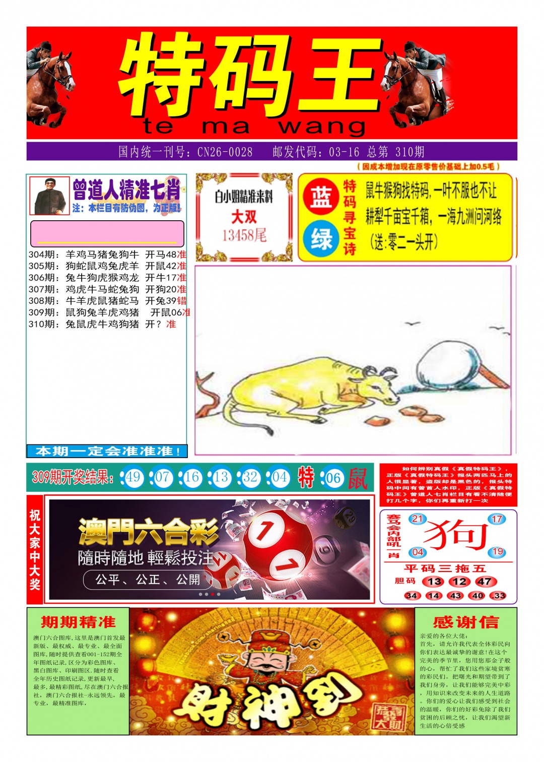 | 111期 | 牛 | 红单 | 7尾 | 0头 | 开马12准 |