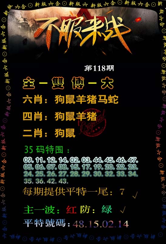 | 118期 | 牛狗蛇兔龙鸡 | 開:?00准 |