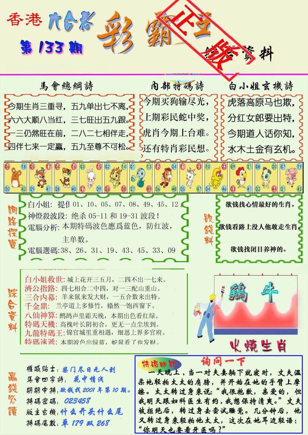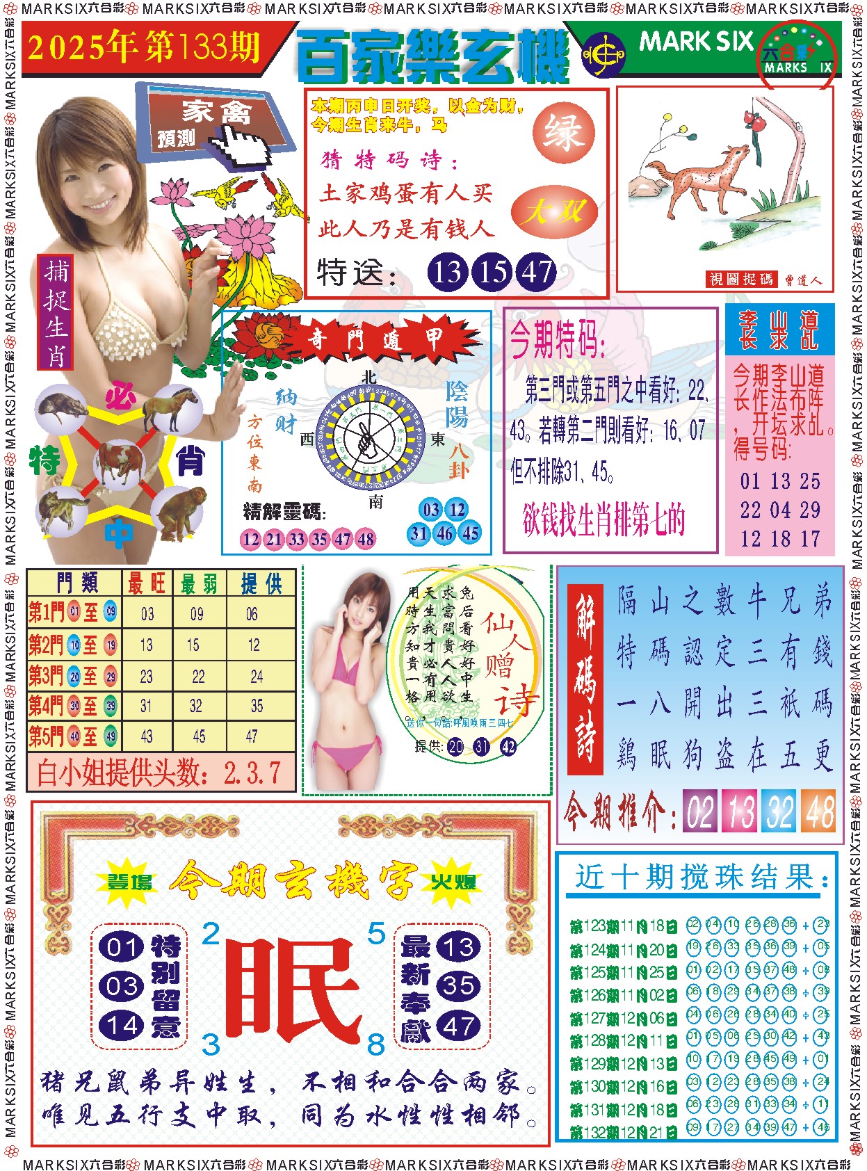| 132期 | 马虎蛇兔羊猪 | 開:?00准 |
